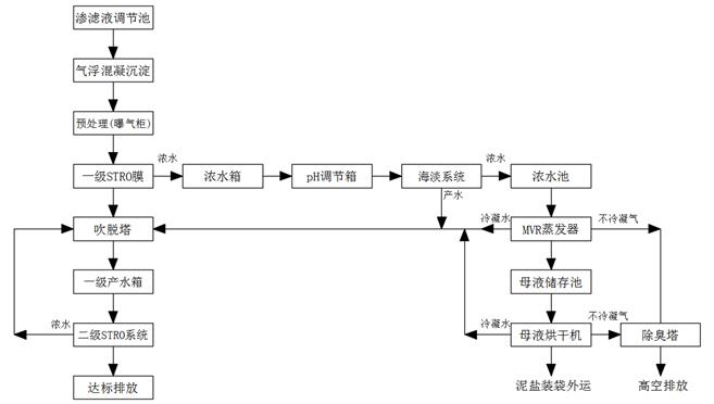 設(shè)計(jì)處理工藝:預(yù)處理+物料膜+多級(jí)海淡膜+MVR蒸發(fā)+母液烘干機(jī)+產(chǎn)水保證膜系統(tǒng)+除臭系統(tǒng)